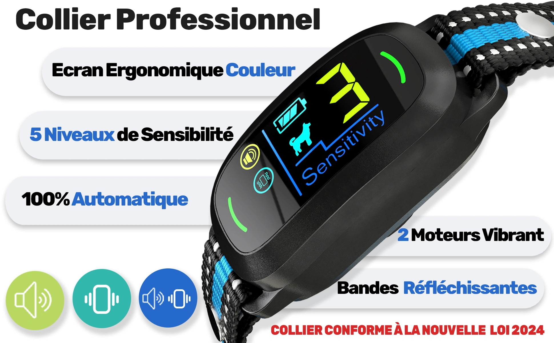 - FIN DES ABOIEMENTS, VOISINS APAISÉS : Collier anti aboiement 100% automatique ! La solution idéale aux problèmes de voisinage causés par les aboiements. 3 modes de fonctionnement (son, vibration et combiné) et 5 niveaux de sensibilité. Simple d’utilisation il s’adapte à tous les comportements canins. Réduit efficacement les aboiements.