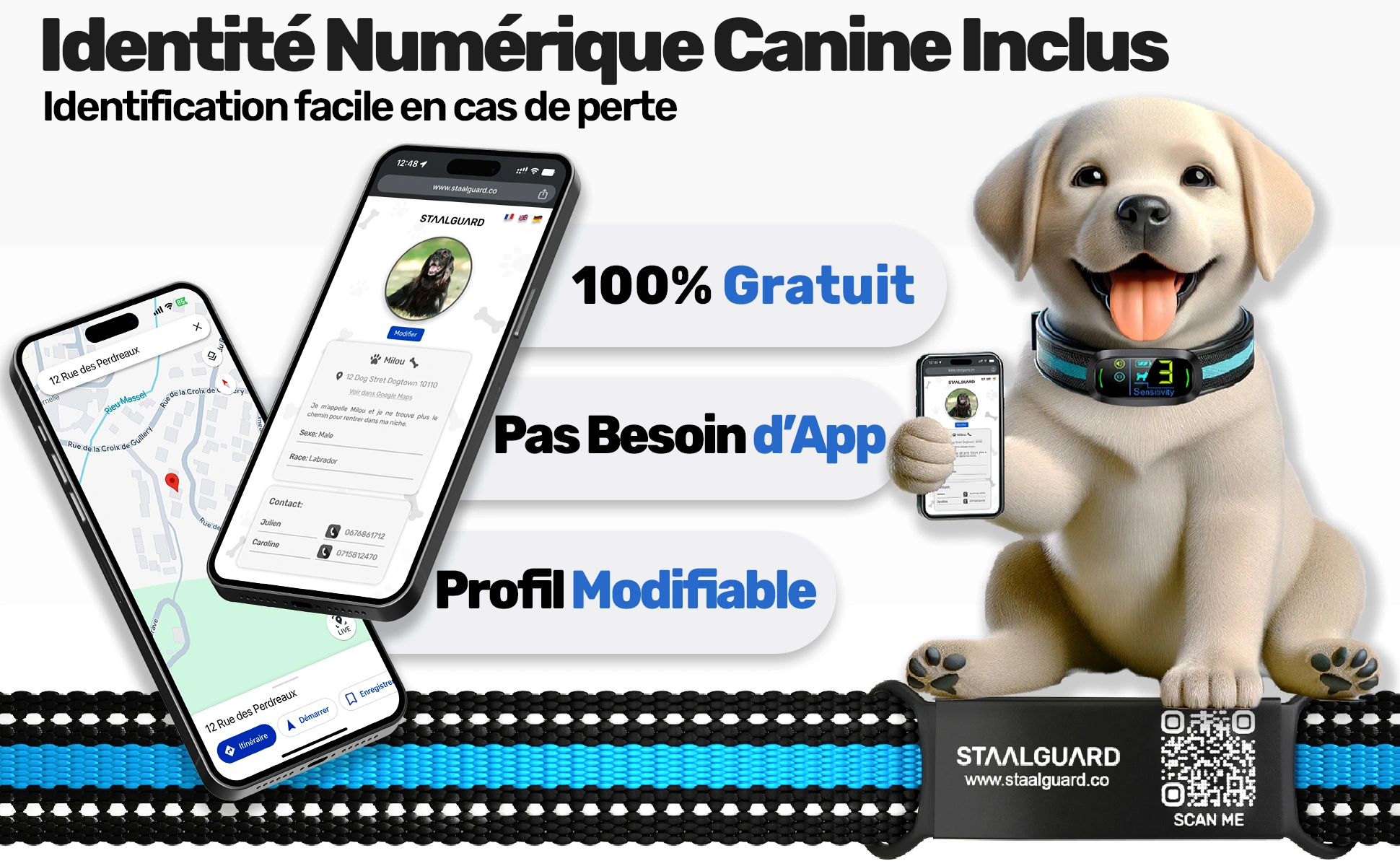 - NE PERDEZ PLUS VOTRE CHIEN : Ce collier de dressage innovant est muni d’un code QR unique, permettant un accès rapide à l’identité de votre chien en cas de perte. Cette fonctionnalité unique offre une tranquillité d’esprit et se révèle indispensable parmi les accessoires pour chiens.
